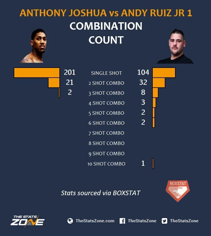 Ruiz on the other hand overwhelmed Joshua by stepping in the pocket and reeling off combinations. Overall, he landed more volume, more variety and was more accurate but ultimately it was his killer instinct and character to brush himself off after the first exchange.