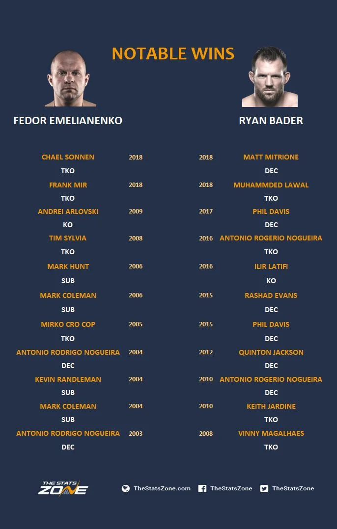 The only question mark on his career is that he never competed in the UFC, unlike his opponent Bader who has claimed some big wins of his own. See below for a list of their notable wins: